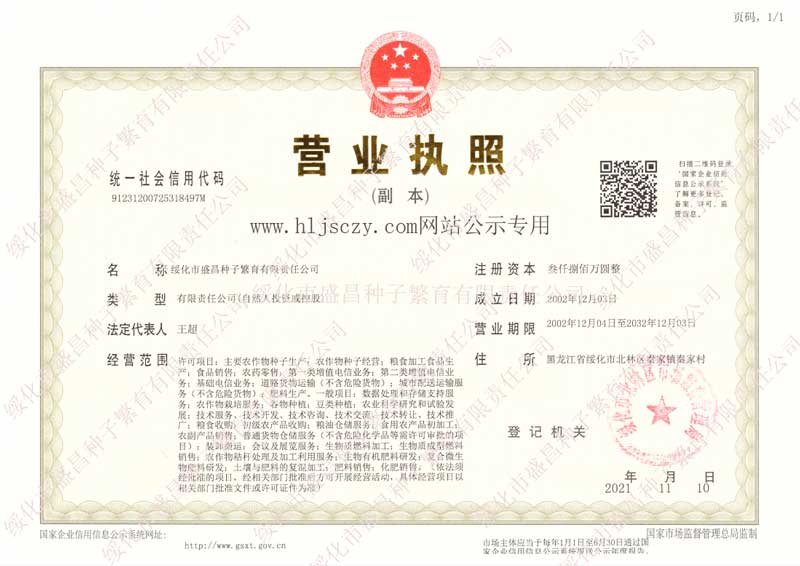 綏化市盛昌種子繁育有限責任公司,坐落在綏化市北林區(qū)秦家鎮(zhèn)內(nèi),位于松嫩平原中部,呼蘭河與諾敏河兩河流域的沖擊平原,公司始建于2002年,原注冊資金3800萬元,現(xiàn)有固定資產(chǎn)3.2億元,公司占地面積20萬㎡,企業(yè)自2002年創(chuàng)建以來不斷發(fā)展壯大,2010年投資建成永久育秧大棚7棟...[查看詳情]